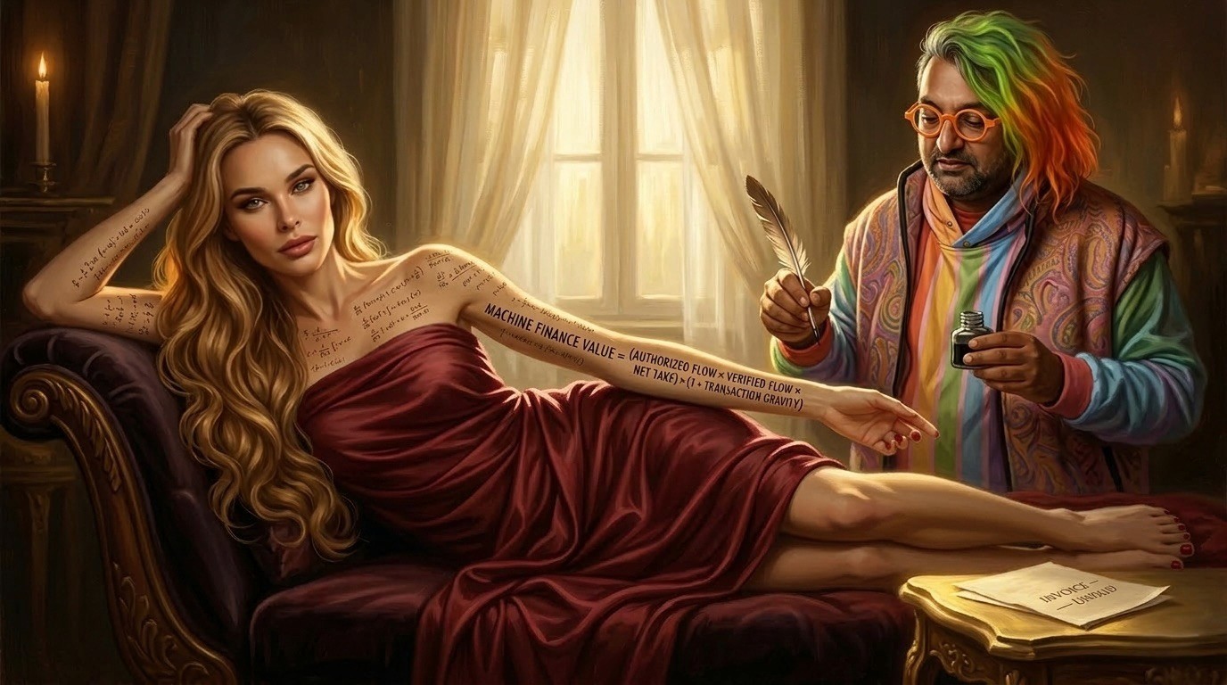 MACHINE FINANCE VALUE = (AUTHORIZED FLOW × VERIFIED FLOW × NET TAKE) × (1 + TRANSACTION GRAVITY)